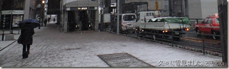 千葉では雨だったのに、豊洲についたら雪になっていた。